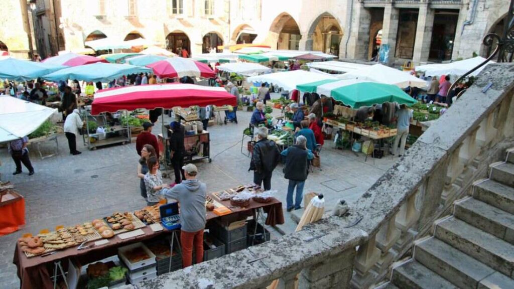To discover the reality of Aveyron specialties, one must leave the beaten track and head to the markets. The market in Villefranche-de-Rouergue, every Thursday morning, is a mandatory stop. Under the “couverts” (arcaded galleries) of Place Notre-Dame, the excitement is palpable. This is where you will meet the small producers: those who still make their own walnut oil, those who raise fat ducks, or those who forage for porcini mushrooms in the nearby forests. The smell of the spit cake cooking on-site blends with the scents of goat cheeses and cured meats.